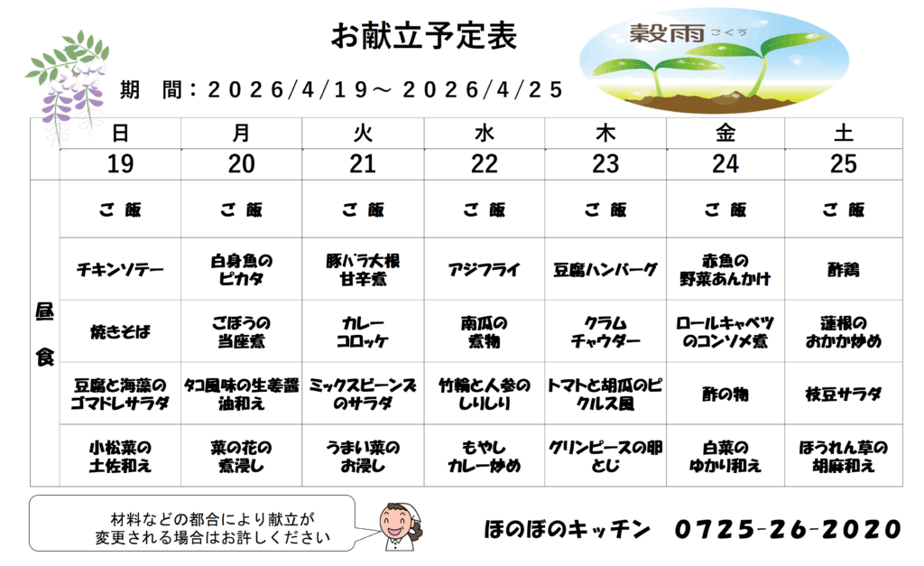 2026年4月8日 / 最終更新日時 : 2026年4月8日 yamaoka 未分類 お献立予定表(4月19日~25日) Follow me! FacebookXHatenaPocketCopy コメントを残す コメントをキャンセルメールアドレスが公開されることはありません。 ※ が付いている欄は必須項目ですコメント ※ 名前 ※ メール ※ サイト 次回のコメントで使用するためブラウザーに自分の名前、メールアドレス、サイトを保存する。
